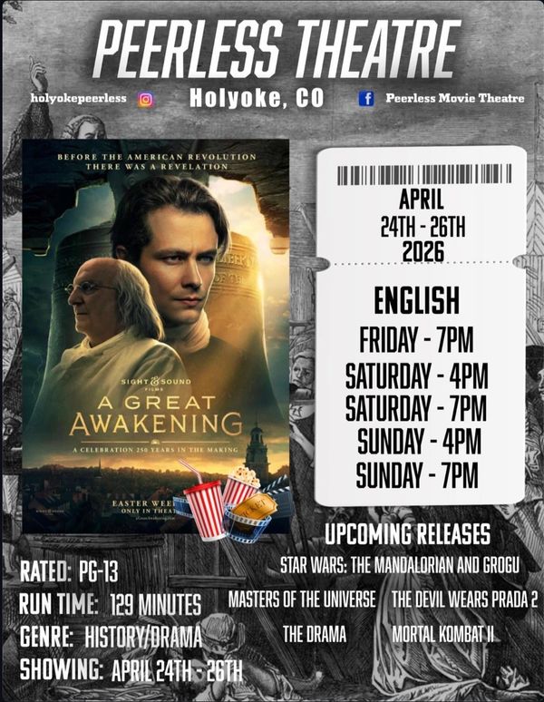 We show a variety of movies including action, comedy, drama, horror, and family-friendly films. Please fill out our google form labeled "I'm Interested in..." to let us know what kind of movies you'd like to see at the Peerless!